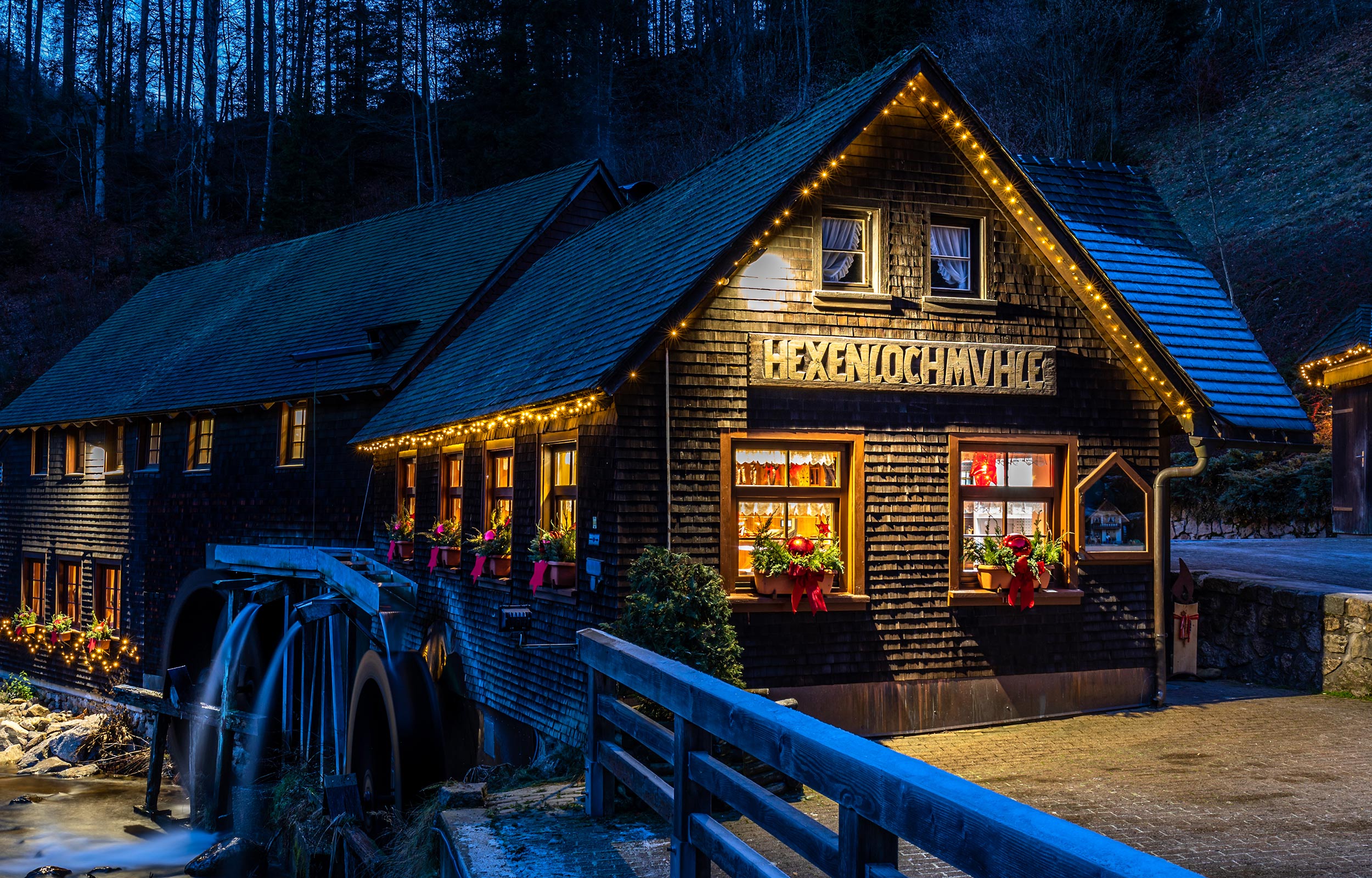 Die Hexenlochmühle wurde 1825 erbaut und ist eine der schönsten, typischen alten Schwarzwaldmühlen. Sie liegt romantisch in einem kleinen Tal - dem Hexenloch - zwischen St. Märgen und Furtwangen. Seit 1839 befindet sie sich in Familienbesitz.